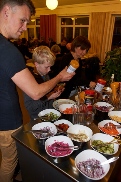 Efter fyraftenssang var der efterfølgende goumethotdog-spisning