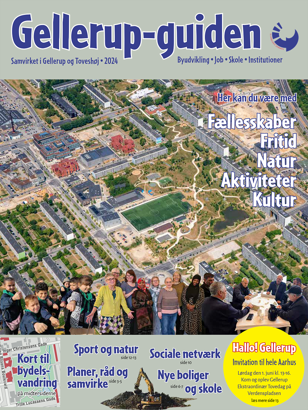 “Velkommen til en verden af muligheder! Gellerup og Toveshøj byder på et væld af aktiviteter for alle, om du er ny i området eller har boet her i årtier, så er der aktiviteter og fællesskaber at finde i dit lokalområde.” Sådan indledes Gellerup-guiden 2024, og der færtsættes: