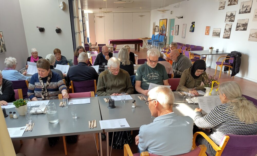 Forleden var det forårsjævndøgn og det markerede Folkehusets Mandags-Café, mandag den 24. marts, med et lækkert stykke smørrebrød og et sangblad fyldt med forårssange.