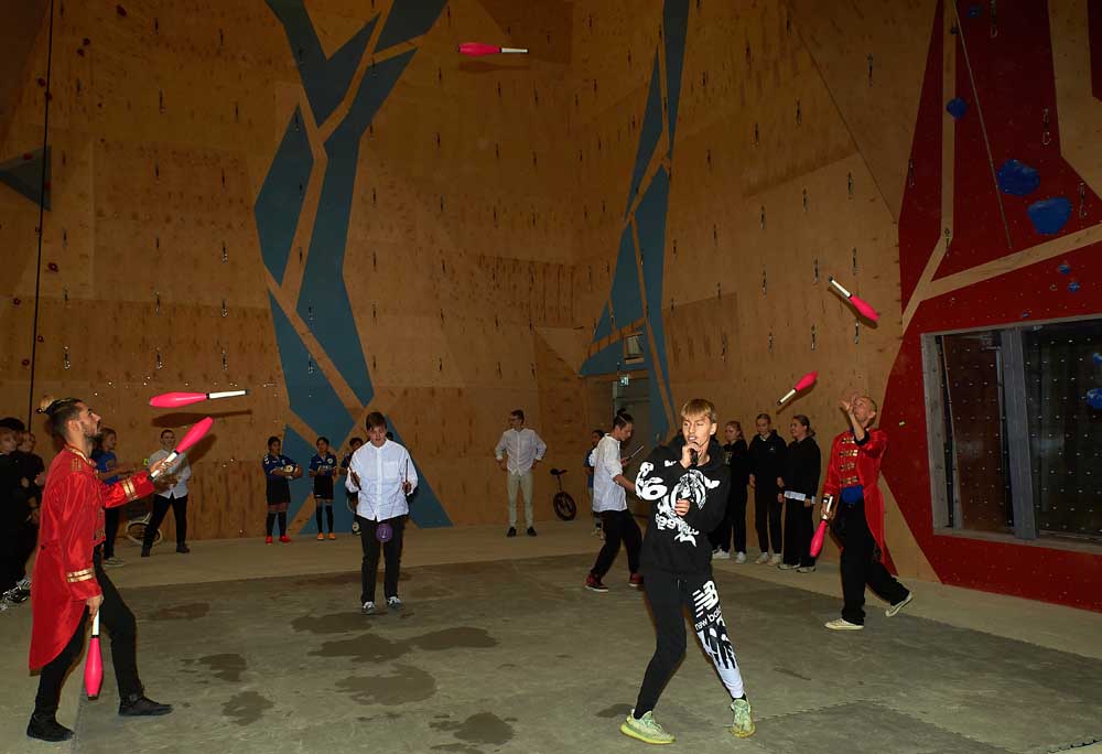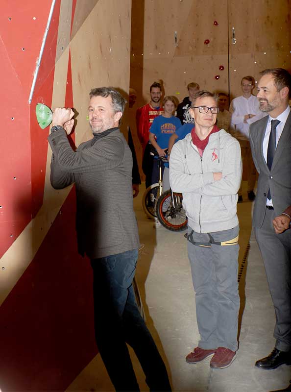 Kronprins Frederik skruede det sidste greb i klatrevæggen i den spritnye klatrehal.
